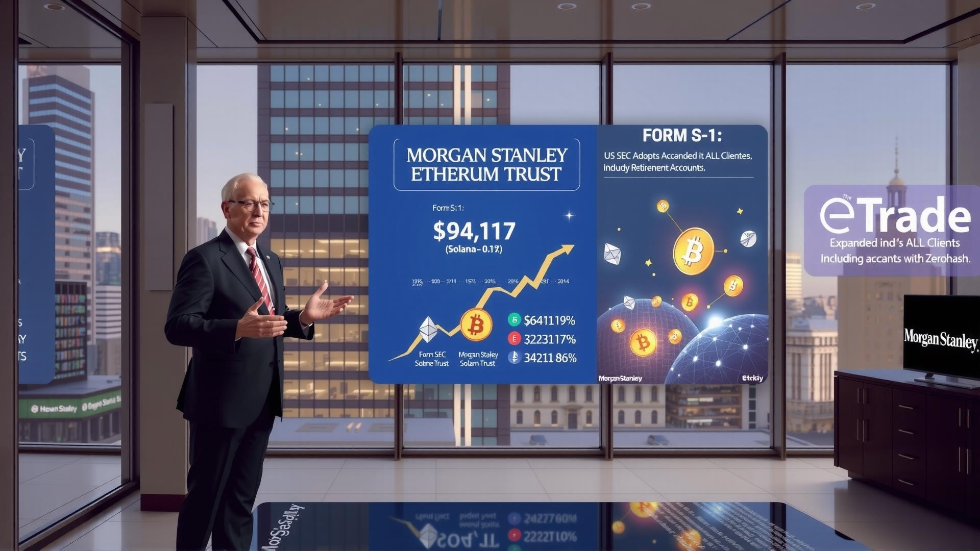 Морган Стэнли подал заявку на создание Траста Ethereum, расширяя свое присутствие на рынке криптовалютМорган Стэнли подал заявку в Комиссию по ценным бумагам и биржам США (SEC) на запуск Траста Ethereum, вслед за регистрацией спотовых биржевых продуктов на биткойн и Solana, тем самым расширяя свое присутствие на рынке криптовалют в начале 2026 года.Во вторник этот гигант Уолл-стрит подал в Комиссию по ценным бумагам и биржам США регистрационное заявление на создание Траста Ethereum от Morgan Stanley – биржевого фонда, предназначенного для отслеживания цены ETH и распределения вознаграждений за стейкинг среди инвесторов.Гигант Уолл-стрит Morgan Stanley ранее во вторник утром подал заявки на регистрацию спотовых биржевых продуктов на биткойн и Solana.На момент написания статьи биткойн вырос почти на 1% за последние сутки и торговался по цене $94 187. Тем временем Solana подорожала почти на 6%, торгуясь примерно по $143.«Траст Morgan Stanley Bitcoin и Траст Morgan Stanley Solana ожидают одобрения регулирующих органов и будут пассивными инвестиционными инструментами, которые стремятся отслеживать динамику цен соответству...»Эти заявки поданы в условиях, когда регулирующие органы при президенте США Дональде Трампе приняли более лояльный подход к криптовалютным рынкам, открывая двери для традиционных финансовых компаний к расширению предложений ETF, связанных с цифровыми активами.Согласно форме S-1, Траст Ethereum будет пассивным инвестиционным инструментом, спонсируемым Morgan Stanley Investment Management, который будет напрямую владеть эфиром и ежедневно оценивать паи на основе ценового ориентира, полученного с крупных торговых площадок.## Банк подал форму S-1 в Комиссию по ценным бумагам и биржам США (SEC) для Траста Ethereum, вслед за своими заявками на ETF на биткойн и Solana.В заявке указано, что траст намерен стейкать часть своих активов в ETH и распределять вознаграждения среди акционеров как минимум ежеквартально, в соответствии с указаниями IRS.На момент написания статьи ETH торговался примерно по $3211, снизившись примерно на 0,7% за день, согласно данным CoinGecko.Этот последний шаг является продолжением планомерного расширения криптостратегии банка.В октябре Morgan Stanley расширил доступ к криптовалютным фондам для всех клиентов, включая владельцев пенсионных счетов, после того как ранее ограничивал доступ только для состоятельных частных лиц.В сентябре прошлого года фирма также подтвердила, что сотрудничала с Zerohash для обеспечения возможности торговли биткойном, Ethereum и Solana через свою платформу ETrade.Согласно пятничному отчету, Morgan Stanley расширяет свои предложения в сфере криптовалют, предоставляя всем клиентам доступ к цифровым активам.CNBC сообщило в пятницу, что с 15 октября консультанты смогут предлагать инвестиции в криптовалютные фонды любым клиентам, включая владельцев пенсионных счетов. Ранее инвестировать в криптовалюты в банке могли только состоятельные частные лица.Morgan Stanley не сразу ответил на вопросы Decrypt.Банк постепенно прокладывает себе путь на рынок цифровых активов...В начале прошлого года генеральный директор и председатель правления банка Тед Пик заявил, что подход банка зависит от регуляторной уверенности.«Для нас уравнение сводится к тому, можем ли мы, как строго регулируемое финансовое учреждение, выступать в качестве участников сделок», — сказал он в январском интервью. Во вторник Morgan Stanley подал 