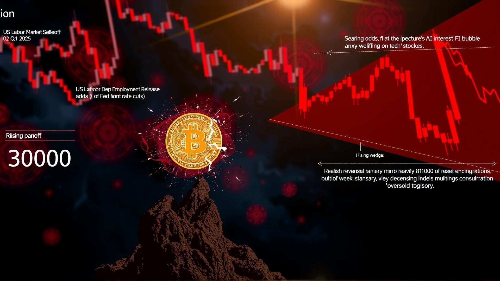Слабость Биткойна сохраняется, поскольку цена BTC падает до $86 000 на фоне распродажи на фондовом рынке США и уменьшения шансов на снижение процентной ставки ФРС на 50 базисных пунктов на следующем заседании FOMC.Один аналитик сделал смелый ценовой прогноз, предположив, что пробой восходящего клина может открыть путь к более глубокой коррекции, потенциально достигающей $30 000.ПОЧЕМУ рынки рушатся? Наше логическое объяснение:Буквально только ОДИН заголовок может быть хотя бы частично виноват в таком внезапном обвале рынка.В 11:20 по восточному времени Министерство труда США заявило, что «ситуация» с занятостью за ноябрь и октябрь будет опубликована… pic.twitter.com/zubNQstd5lНедавний откат Биткойна повторяет ту же бычью структуру разворота, которая наблюдалась в первом квартале 2025 года, заявил аналитик Кас Аббе.Тогда BTC потерял импульс вблизи своего нового исторического максимума, опустился ниже ключевого уровня поддержки и отвязался от растущего фондового рынка, прежде чем достигнуть дна в многонедельном диапазоне накопления.Приведенный ниже график Аббе показывает, что этот паттерн вновь проявился почти идентично в последние месяцы, при этом аналитик добавил, что BTC, вероятно, войдет в «консолидацию между $85 000 и $100 000 на 3-4 недели».В первом квартале 2025 года распродажа была вызвана тарифной войной США. На этот раз катализатором стала паника по поводу потенциального пузыря ИИ – опасения, которые сильно давили на акции технологических компаний и перекинулись на криптовалютный рынок, прежде чем оптимистичный прогноз по доходам Nvidia помог успокоить рынки.Аналитик BitBull поддержал прогноз бычьего разворота, хотя его точка зрения больше опирается на техническую структуру нисходящего канала Биткойна и его сильно перепроданные условия по состоянию на четверг.BTC торговался вблизи нижней границы этого многонедельного нисходящего тренда – области, которая неоднократно выступала в качестве зоны накопления во время предыдущих коррекций.Кроме того, недельный индекс относительной силы (RSI) Биткойна впервые за несколько месяцев опустился в зону перепроданности.Аналитик AlejandroBTC занял гораздо более медвежью позицию, отметив, что Биткойн официально пробил вниз крупный паттерн восходящего клина, о котором он предупреждал в течение нескольких месяцев.В классическом техническом анализе пробой восходящего клина обычно знаменует окончание крупного тренда, при этом измеренное движение указывает на значительное снижение.В этом случае AlejandroBTC утверждает, что эта структура прогнозирует долгосрочную цель в районе $30 000 – уровня, который совпадает с несколькими историческими зонами поддержки на недельном графике.Эта статья не содержит инвестиционных советов или рекомендаций. Любое инвестиционное и торговое действие сопряжено с риском, и читателям следует проводить собственное исследование при принятии решения.