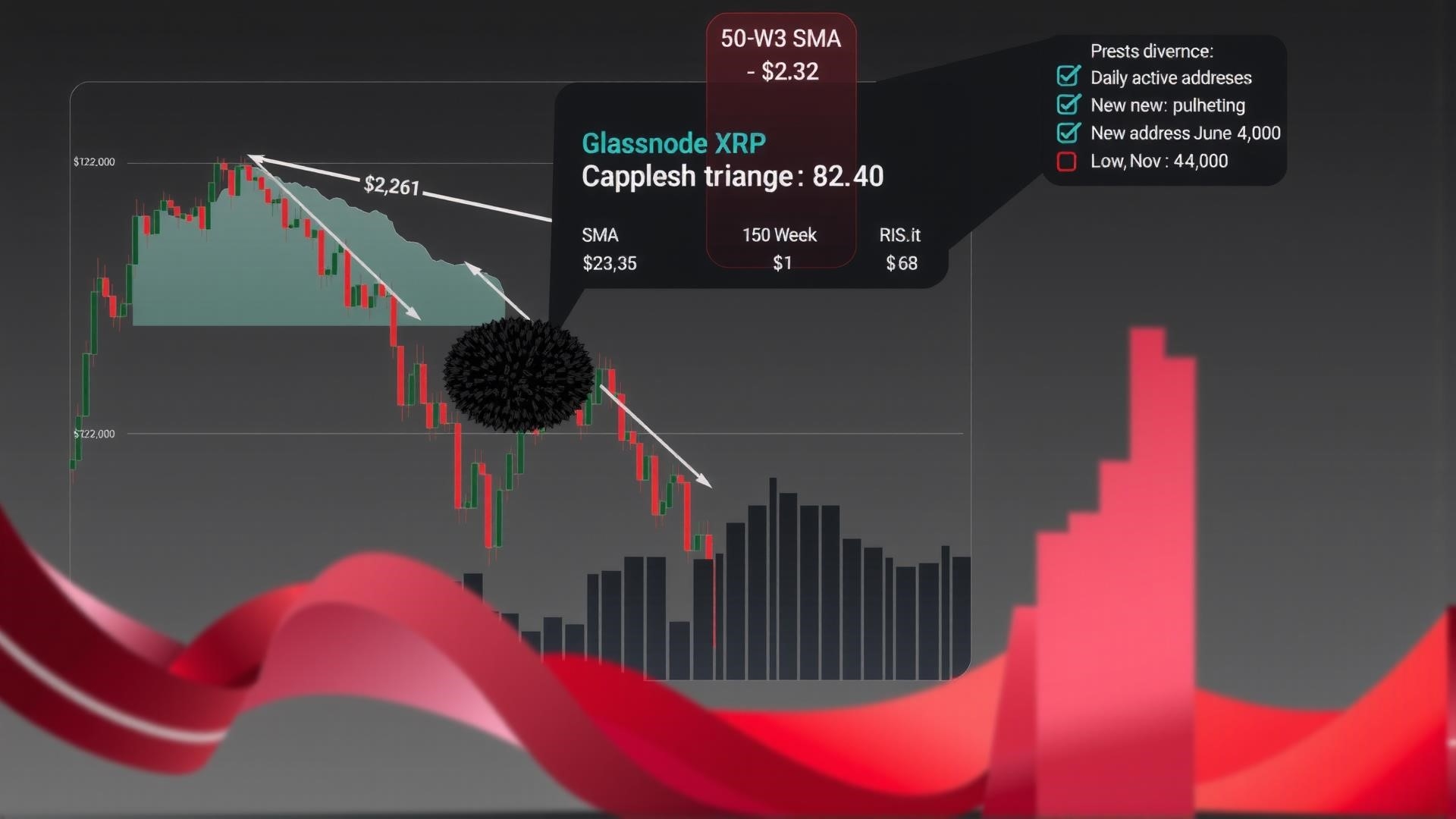 Тепловая карта распределения Glassnode показывает, что большой кластер предложения находится между $2,38 и $2,40 (ограниченный 100-дневной SMA и линией сопротивления треугольника), где было приобретено почти 3,23 миллиарда XRP. Это указывает на область сильного сопротивления для XRP, что усиливает негативное давление.