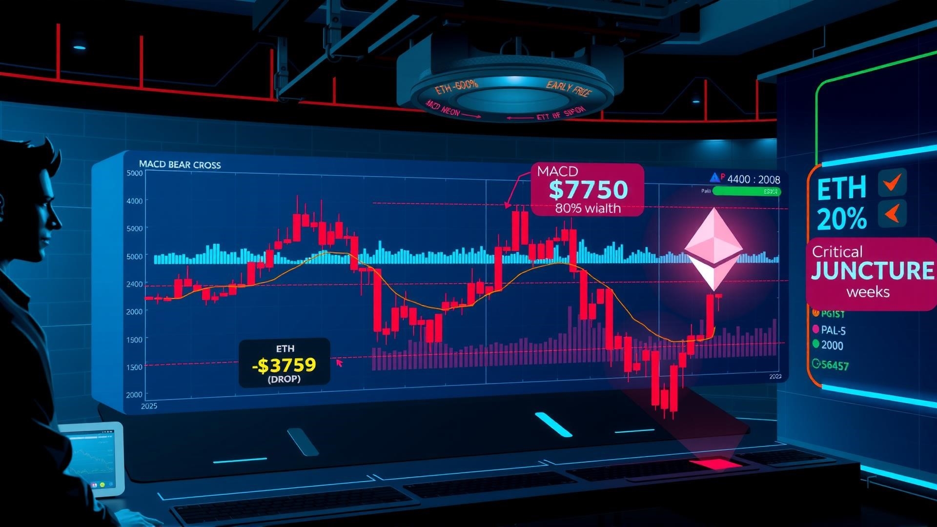 (Твит: Меняется ли импульс #Ethereum? 👀 После прорыва выше максимумов диапазона, $ETH, похоже, снова входит в недельный диапазон. Хотя неделя еще не закрылась, MACD в настоящее время пересекается по-медвежьи. Требуется подтверждение, но нужно быть готовым к любому сценарию. 🫡 (Скриншот твита с графиком цены ETH и индикатором MACD))Другие аналитики цены ETH предполагают, что альткоин может продолжить свою коррекцию, чтобы повторно протестировать более низкие уровни поддержки, прежде чем начать новое ралли к $5 000.Цена Эфира приближается к переломному моменту, поскольку она повторно тестирует уровень поддержки в $4 000 — область, которую она удерживала с момента восстановления в начале августа.Отметим, что в последний раз, когда Эфир опускался ниже этого уровня в декабре 2021 года, за этим последовало падение цены ETH на 78%, достигнув дна около $880 во время медвежьего рынка 2022 года.«Пока цена ETH удерживается выше уровня поддержки в $3 899, прямое движение вверх остается возможным», — заявил аналитик Elliott Wave Man of Bitcoin в своем сообщении на X, добавив:Is #Ethereum shifting momentum? 👀